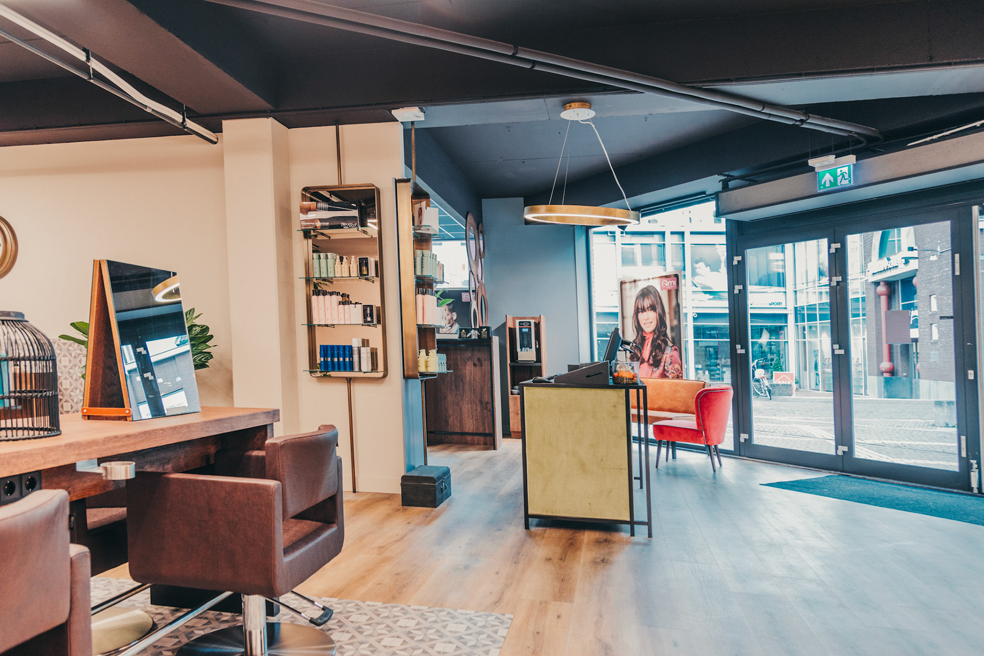 Een salon waar alle 4 de belevingswerelden van AMI kappers terug te vinden zijn; dames, kleuren, visagie en speciaal voor de mannen AMI Gents. De Gents salon is een echte man cave: een frisse, stoere uitstraling met enkele gadgets. In de dames salon hebben we naast de pastelkleuren en weelderige bloemen op de muur, grote spiegels toegevoegd. De aparte visagie en kleurruimten zijn voorzien van mooie donkere houten meubelen wat het geheel een sfeervolle uitstraling geeft. Voor de wachtende mensen hebben we comfortabele en uitnodigende zithoekjes gecreëerd.