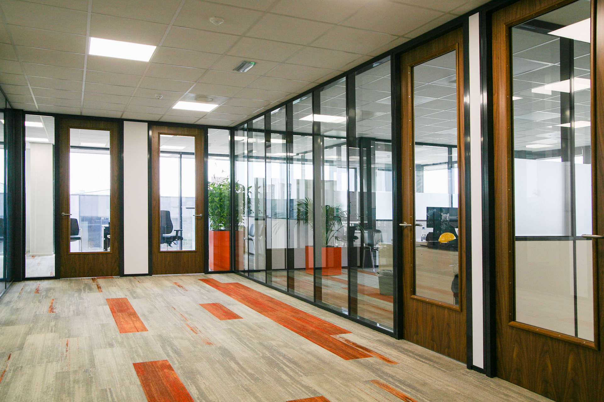 Dit nuchtere Achterhoekse softwarebedrijf is onlangs verhuisd van Duiven naar Doetinchem. Voor de nieuwe locatie aan de A18zijn wij gevraagd het interieurontwerp te verzorgen voor het 4 verdiepingen tellend pand. Op de 3 bovenverdiepingen zijn door middel van glazen kantoorwanden moderne en strakke werkruimtes gerealiseerd. De vloerbedekking met daarin de oranje huisstijlkleur als accent, zorgt voor een warme uitstraling. Op de benedenverdieping zijn een restaurant, bar, receptie en spreekkamer gecreëerd. Om het geheel tot een aangename en multifunctionele ontvangstruimte te maken voor medewerkers en gasten zijn de ruimtes gefragmenteerd en flexibel ingedeeld.
