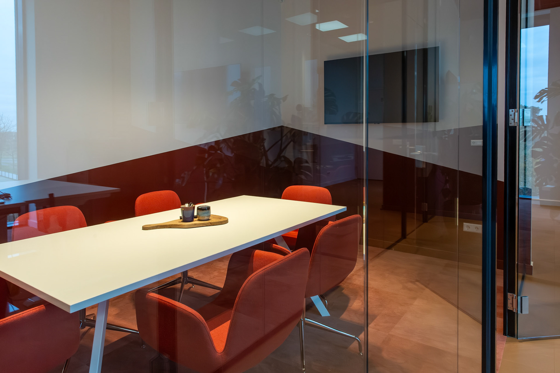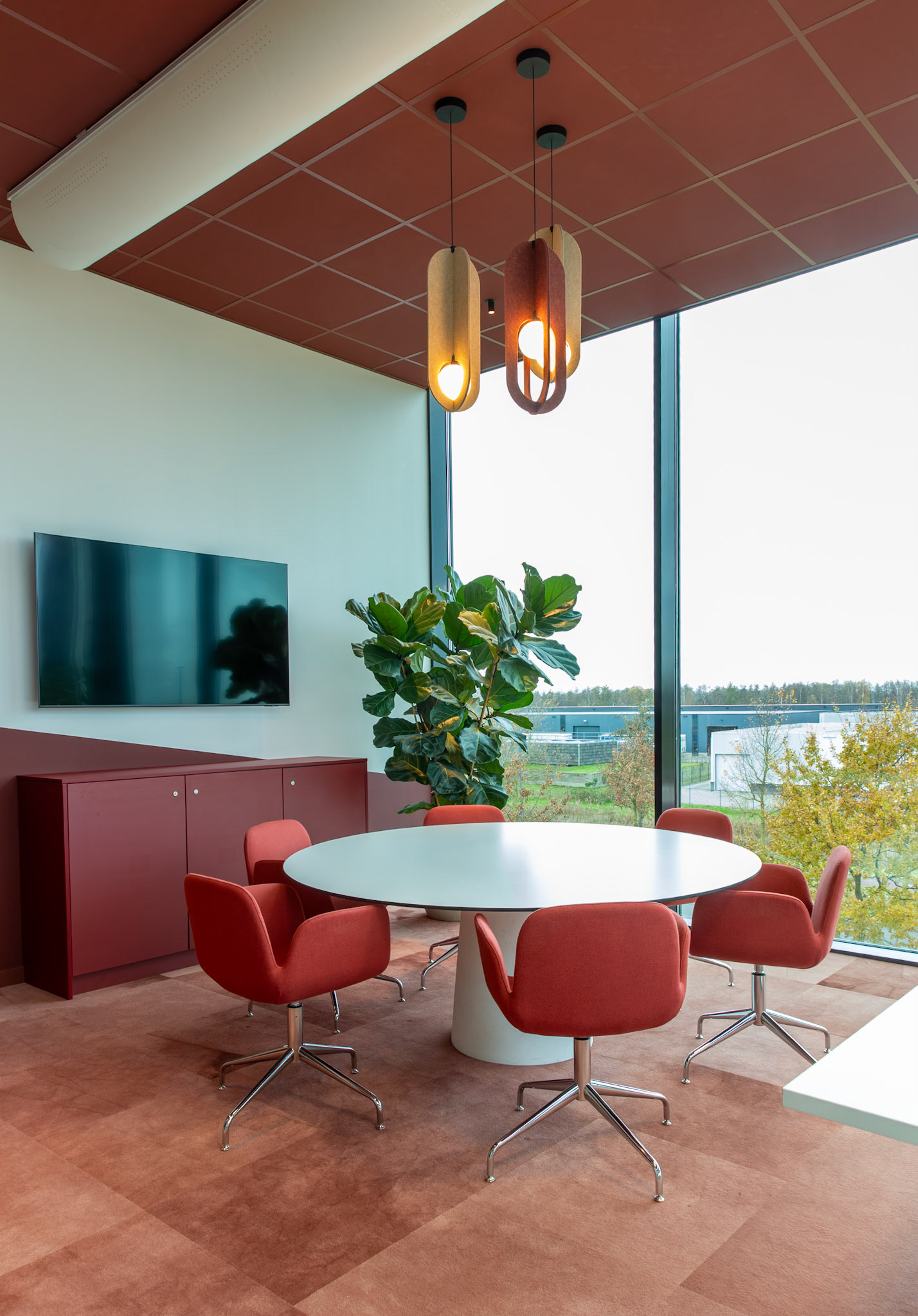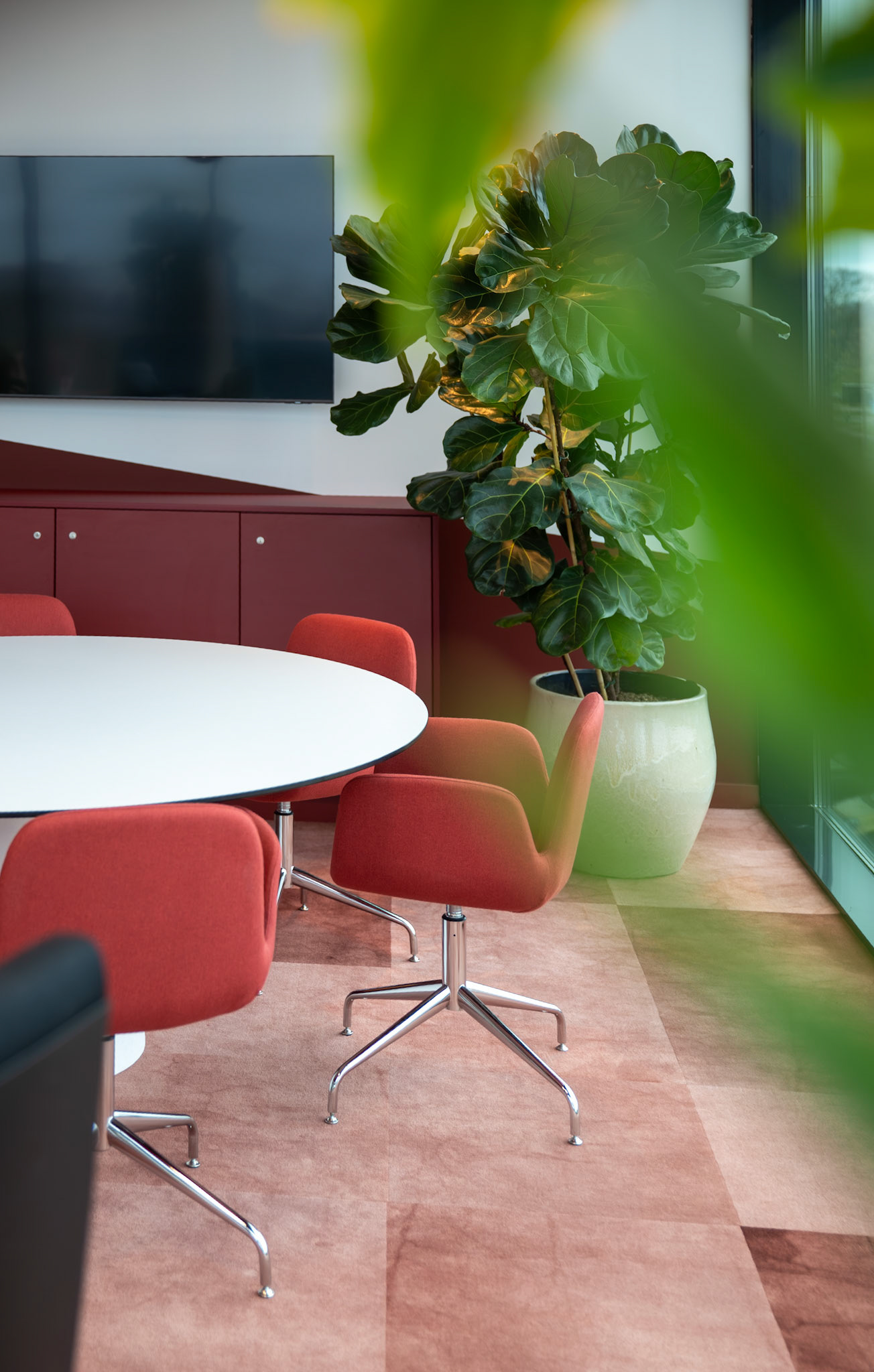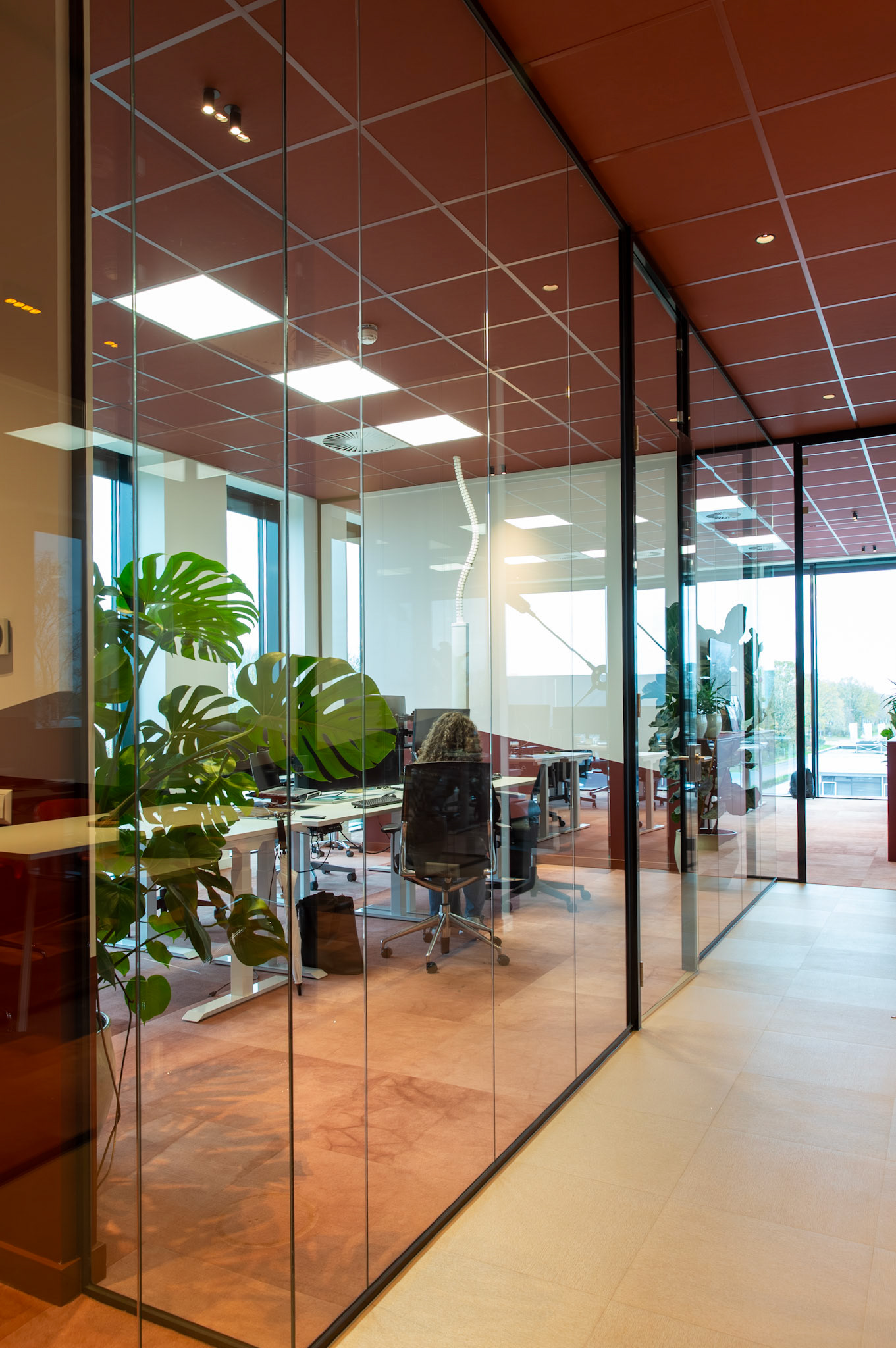 De combinatie met strakke, witte bureaus zorgt voor een frisse en evenwichtige compositie, waarin functionaliteit en esthetiek naadloos samengaan. Het resultaat is een interieur dat zowel tijdloos als karaktervol is, een plek waar de identiteit van Moma Beauty volledig tot haar recht komt.